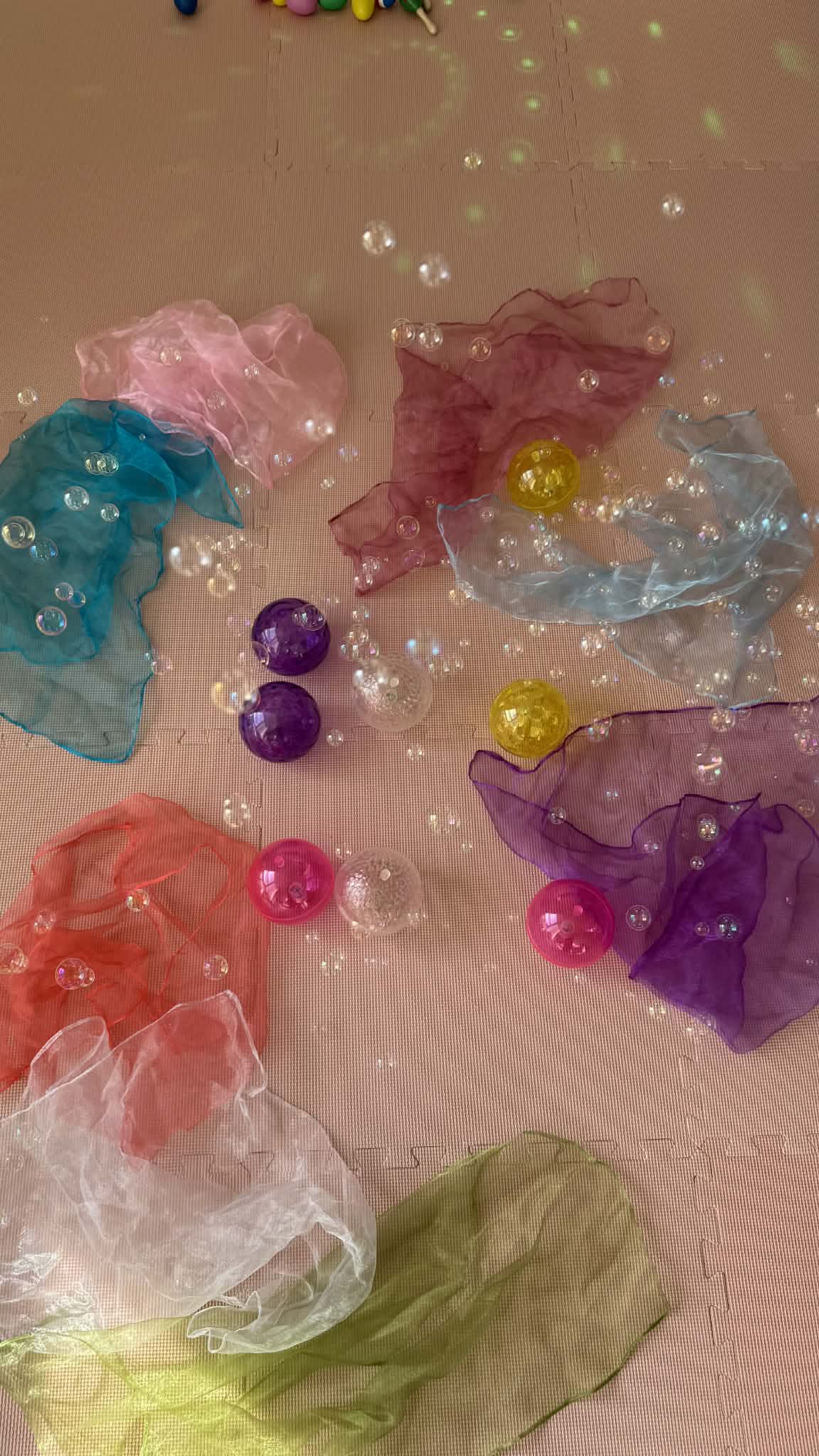 A magical class for babies and parents to connect, explore, and flourish together through sensory play.